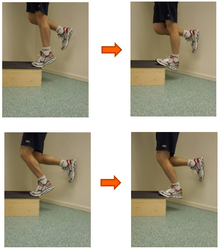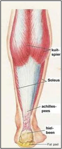 - rekken kuitspieren. (excentrisch rekken, zie de afbeelding).