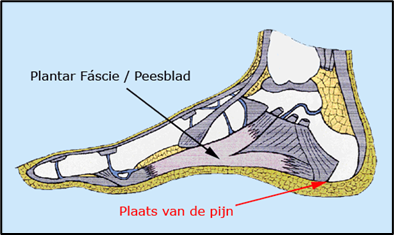 Een veel voorkomende klacht bij hardlopen is een stijve en pijnlijke plek onder de hiel. Dit is de plaats waar een sterke peesplaat, de fascia plantaris, onder de voet aanhecht. Als deze aanhechting geïrriteerd en ontstoken raakt, wordt de blessure 'hielspoor' genoemd. Bij hardlopen treedt deze hielspoor vrijwel nooit plotseling op, maar nemen de klachten geleidelijk aan toe. Het is dan ook een typisch voorbeeld van een overbelastingsblessure. In het beginstadium van deze blessure is er slechtssprake van een stijf en /of zeurend pijngevoel (de ochtend) na een zware inspanning of als er met blote voeten op een harde ondergrond wordt gelopen De aanhechting is vooral pijnlijk als erop gedrukt wordt. Als er geen tegenmaatregelen worden genomen zullen ook pijnklachten optreden bij het begin van de inspanning. Deze klachten verdwijnen in het begin nog tijdens de warming-up, maar keren weer terug na afloop van de sportbeoefening. Als er toch doorgesport wordt, zullen de pijnklachten nog meer toenemen en zal hardlopen niet meer (goed) mogelijk zijn. Genezing van de hielspoor zal maanden gaan duren.Oorzaken van de hielspoorMeestal is de hielspoor een samenspel van factoren verantwoordelijk voor het ontstaan van een overbelastingsblessure, wat een hielspoor is. De peesplaat wordt maar matig doorbloed, waardoor het herstel na overbelasting slechts langzaam verloopt. Overbelasting wordt vooral in de hand gewerkt door: