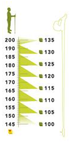 De lengte van de poles is belangrijk. Om de juiste pole-lengte te bepalen is er de simpele formule 0,68 x de lichaamslengte. Voorbeeld: uw lengte is 183 cm. De berekening is dan 0,68 x 183 = 124,44 de juiste stoklengte is dan 125 cm.